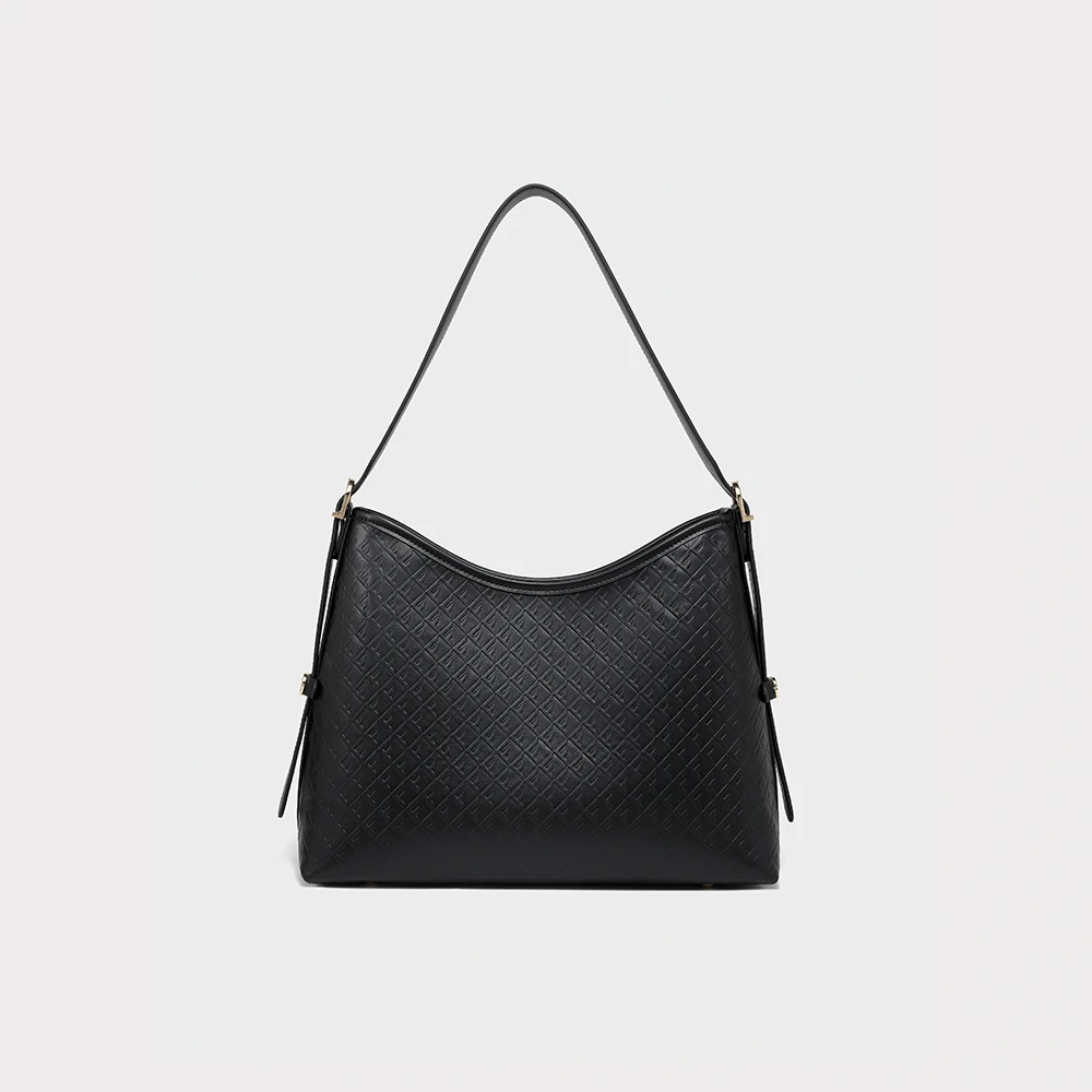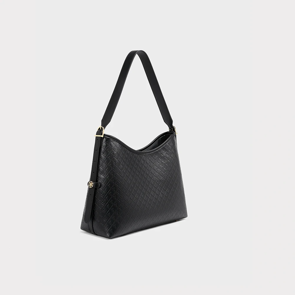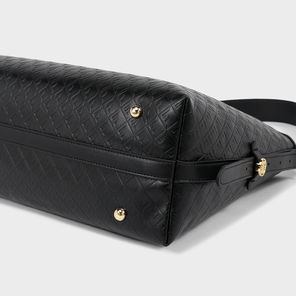 Bolsa com textura em monograma e acabamento sofisticado. Possui alça de ombro ajustável, fechamento superior e compartimentos internos que facilitam a organização. Elegante e versátil, é perfeita para acompanhar produções do dia a dia com praticidade e estilo refinado.