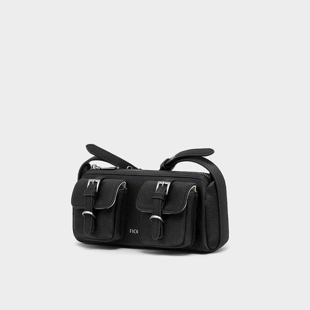 Bolsa na cor preta em tecido tecnológico, com bolsos externos, fivelas na parte frontal, acompanha alça ajustável, dois compartimentos internos, bolsos externos com detalhe com fivela e logo na parte frontal.