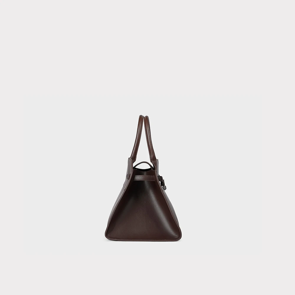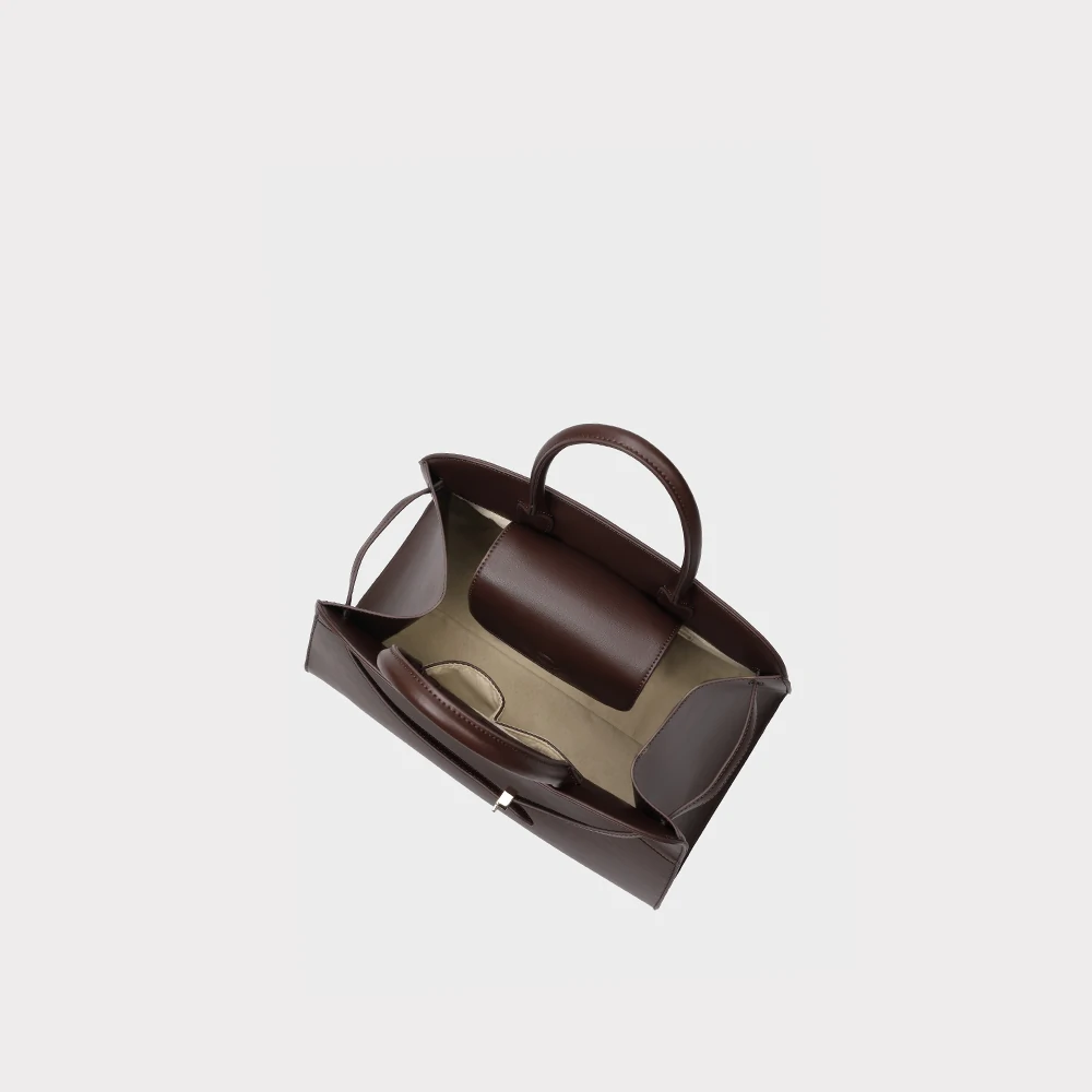 Design elegante e linhas minimalistas. Possui alça de mão, fechamento superior e detalhe frontal delicado que valoriza o visual. Espaçosa e sofisticada, é ideal para acompanhar a rotina com praticidade e estilo.