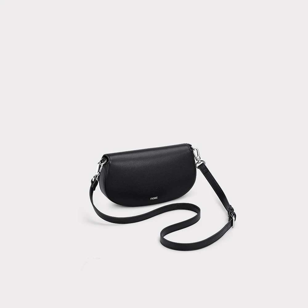 Bolsa confeccionada em tecido tecnológico na cor preta possui base arredondada, logo da Fiore em ferro na parte frontal, um bolso interno com fecho por zíper, detalhe com o nome Fiore na parte posterior, três alças removíveis, sendo uma de corrente na cor prata e fecho por botão magnético.